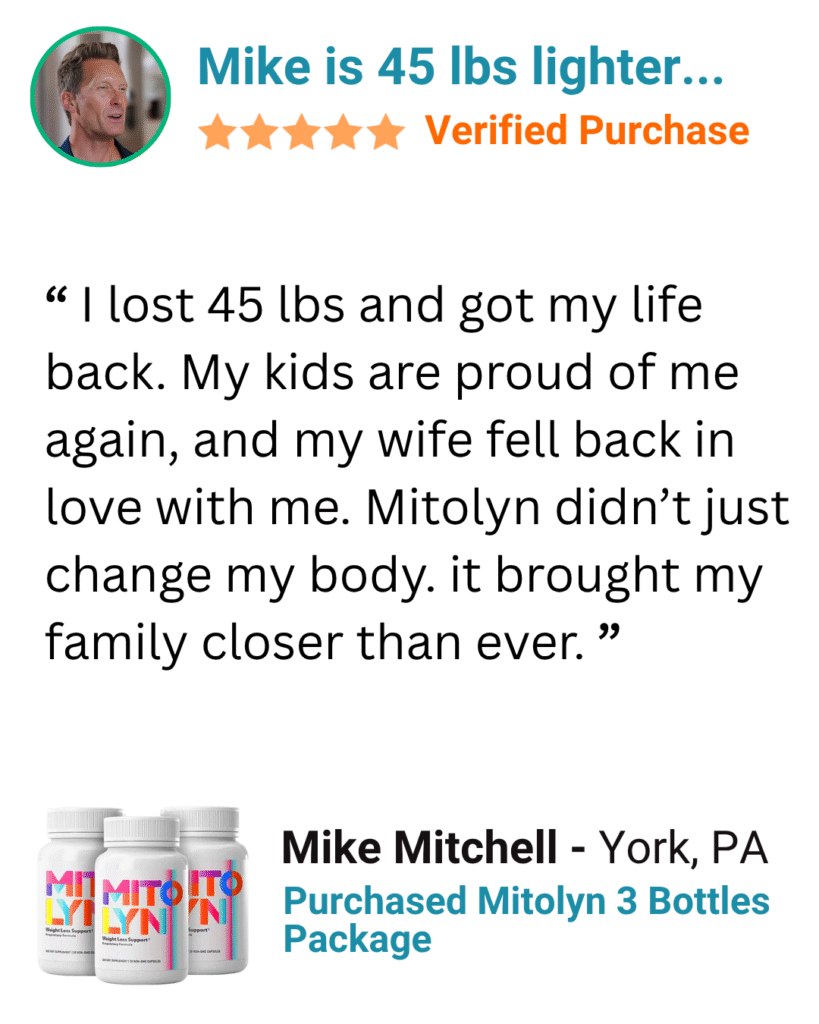 Mitolyn reignites those engines so your body finally burns fat naturally, around the clock. No starvation. No endless workouts. Just effortless, consistent fat loss that lets you wake up lighter, energized, and confident again.