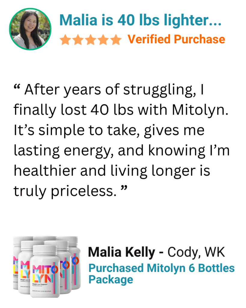 After using Mitolyn, you’ll finally watch stubborn fat disappear as your body starts working with you again.